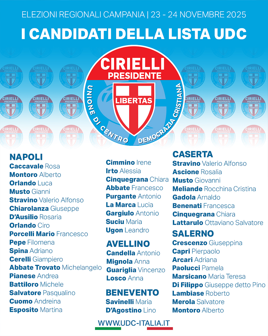 La nostra è una forza politica che si riconosce nei valori del cattolicesimo democratico e nella politica come servizio, con l’obiettivo di costruire una Campania che guarda avanti con serietà e responsabilità.