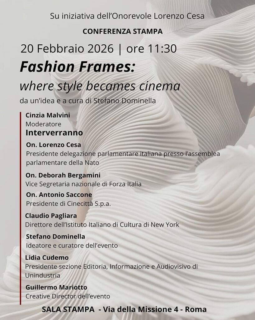 Questa mattina alla Camera dei Deputati si è svolta la conferenza stampa di presentazione del progetto “Fashion Frames: where style becomes cinema”.